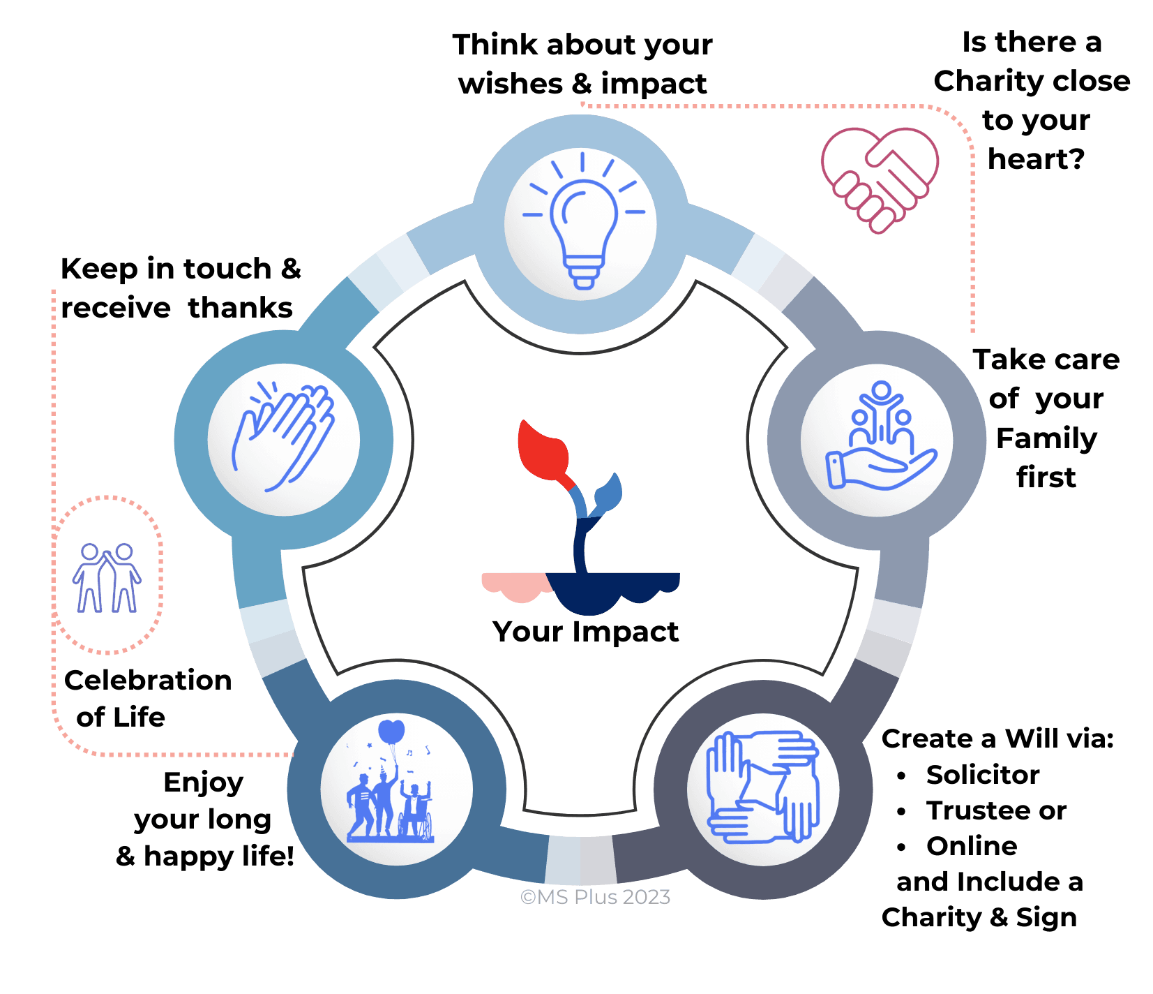 This Giving Toolkit is designed to help you understand how to make a gift in your Will to MS Plus. A gift in Will can often be called a bequest or a legacy and even a devise, depending on the type of item given. You can find out more below or please contact us on 1800 443 867