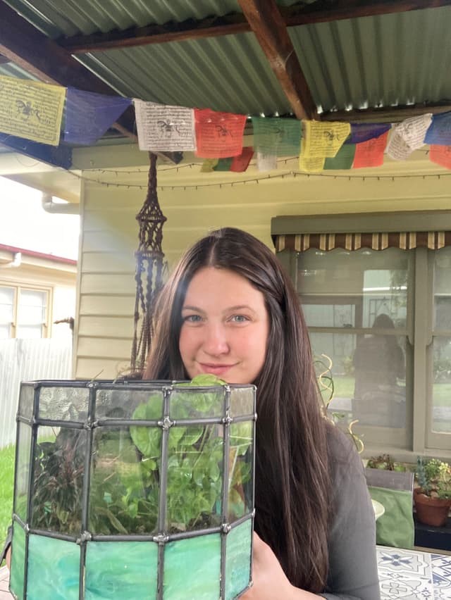 Lead-lighting has since become Steph's therapeutic outlet. During the past two years, Steph has developed a keen interest in lead lighting, building terrariums, sun catchers and lamp shades.